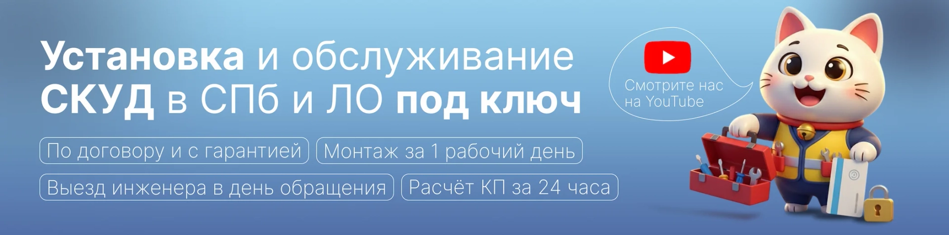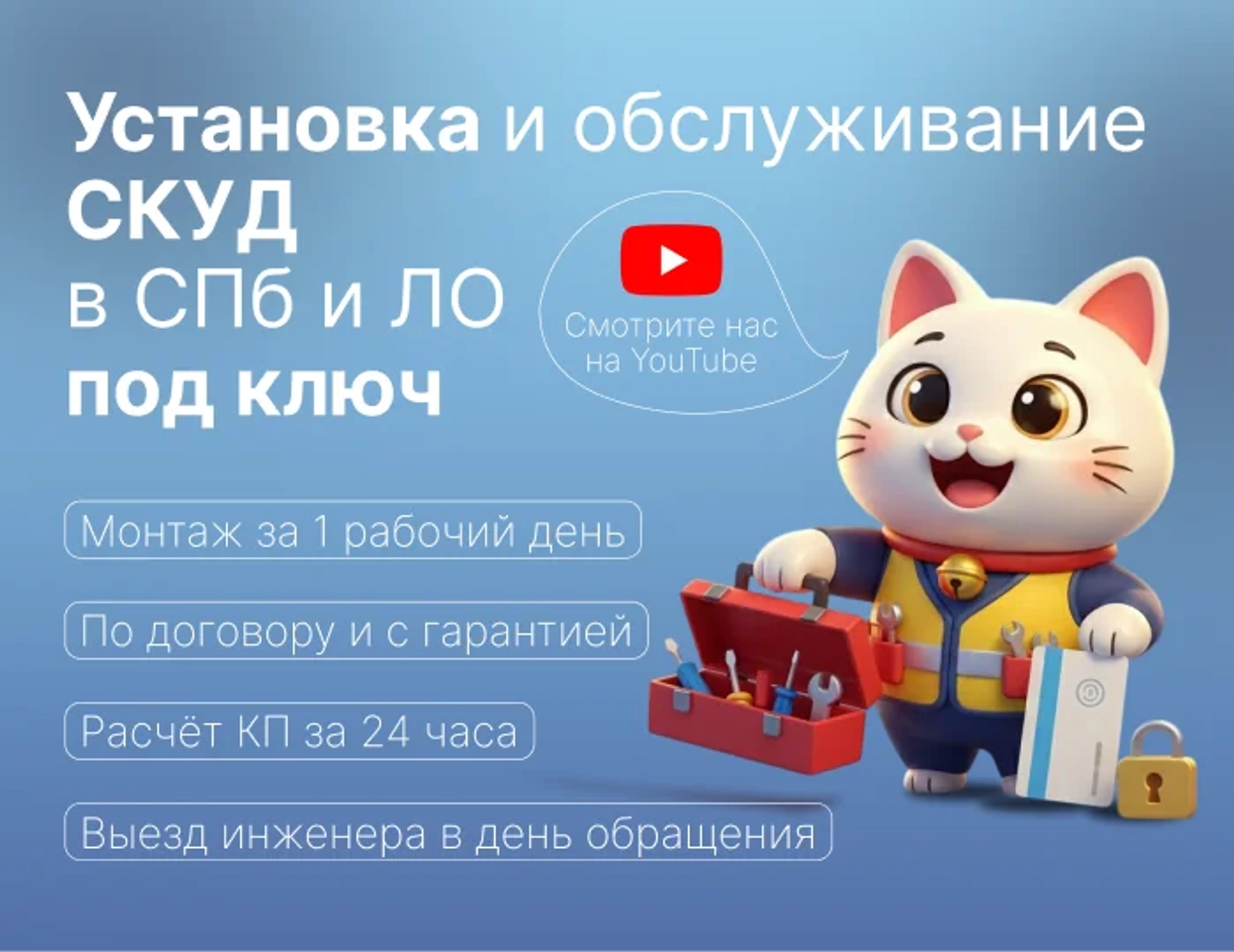 Выполняем установку «под ключ» и предоставляем гарантию 12–24 месяца.